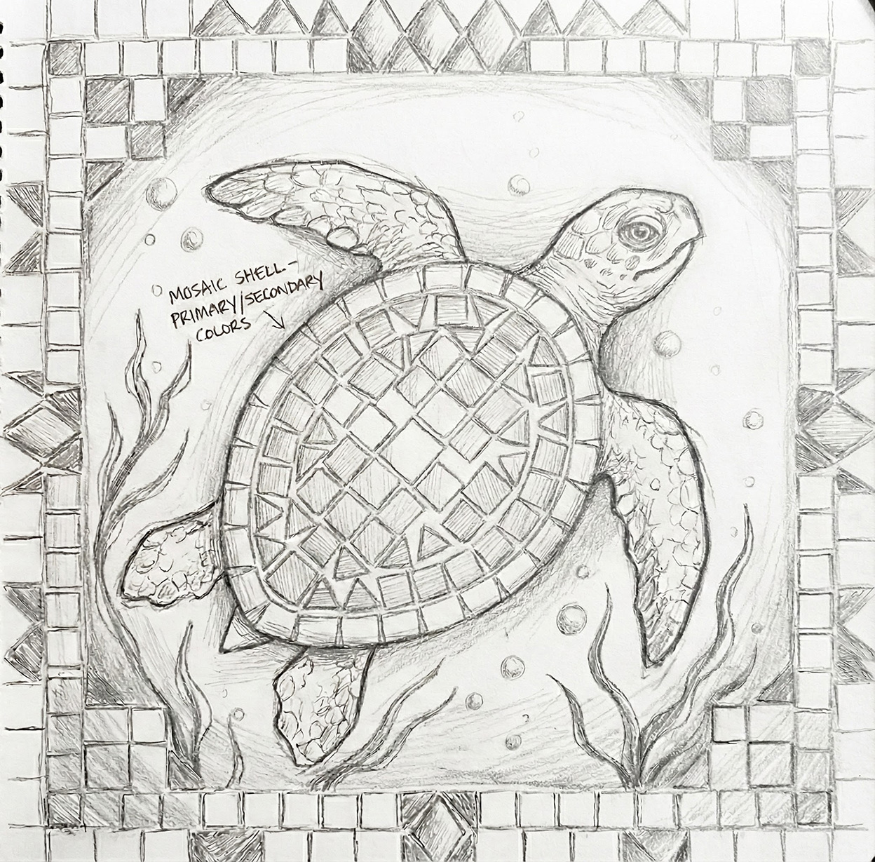 Complete a full sketch of your final design in your sketchbook before starting. This should show your overall composition, where your tessellated pattern will go, and your color plan.