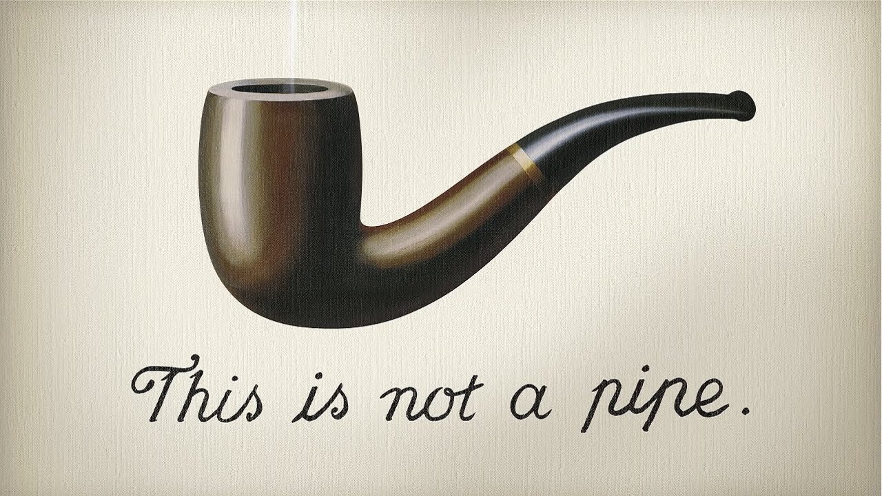 Famous Work: "The Treachery of Images" β a painting of a pipe with text saying "This is not a pipe"